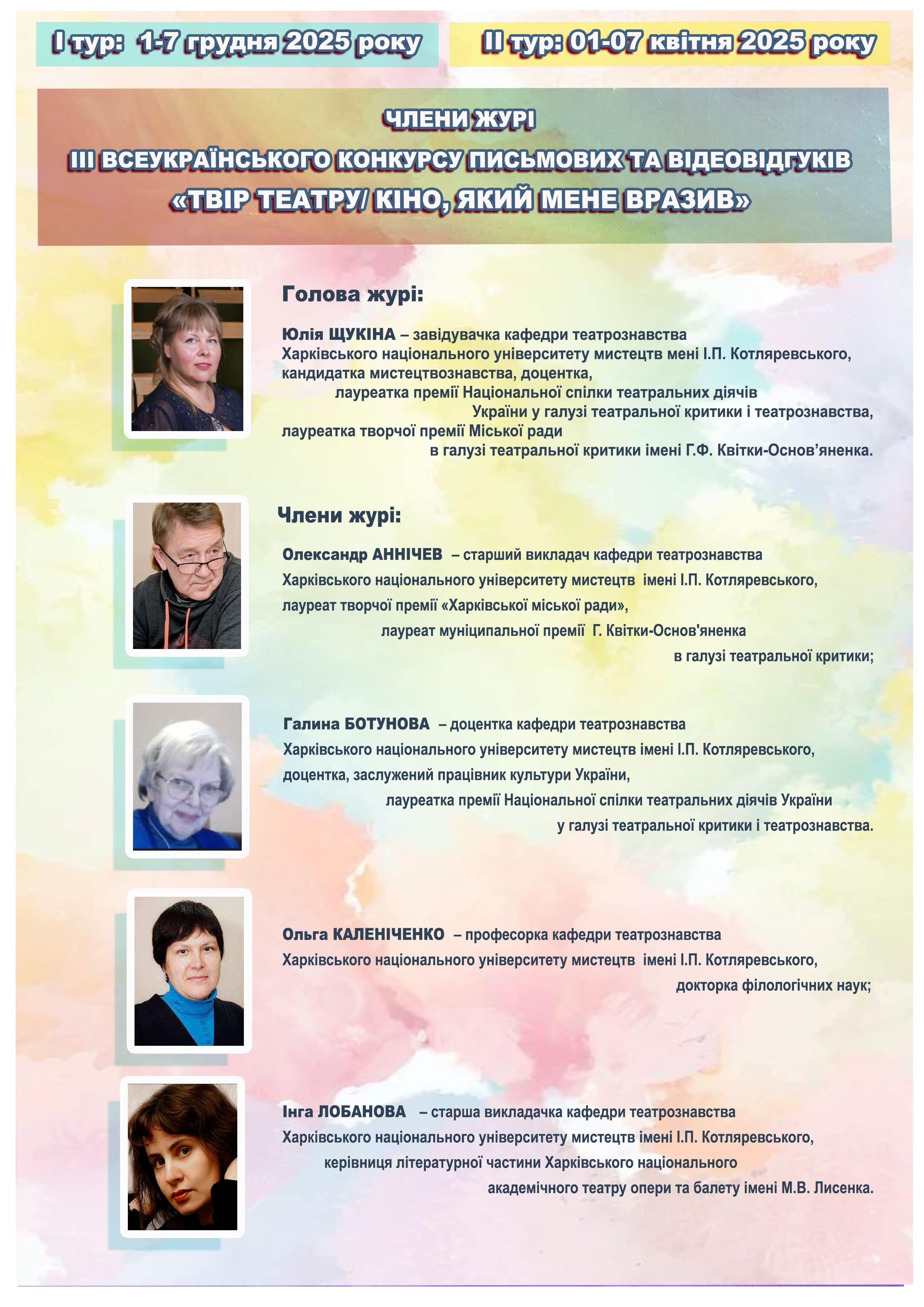 1-7 ГРУДНЯ 2025 р. У ХНУМ ІМЕНІ І.П.КОТЛЯРЕВСЬКОГО ВІДБУДЕТЬСЯ І ТУР ВСЕУКРАЇНСЬКОГО КОНКУРСУ ПИСЬМОВИХ ТА ВІДЕОВІДГУКІВ «ТВІР ТЕАТРУ/КІНО, ЯКИЙ МЕНЕ ВРАЗИВ», ПРИСВЯЧЕНОГО ДО 170-річчя ВІД ДНЯ НАРОДЖЕННЯ ВИДАТНОГО ДРАМАТУРГА, ДОСЛІДНИКА УКРАЇНСЬКОГО ТЕАТРУ, ПОЕТА І ПРОЗАЇКА ІВАНА ФРАНКА.