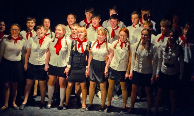 В финале капустника прозвучал гимн театрального факультета, который объединил всех собравшихся в зале.