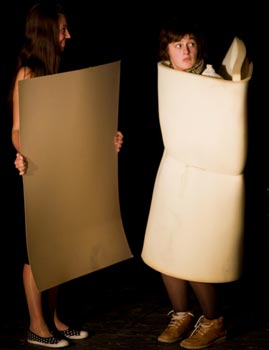 Также первый курс кукольников поздравили сотоварищи – студент II-ого курса кафедры мастерства актера Глеб Ковалев (худ. рук. засл. деятель искусств А. А. Аркадин-Школьник) и Егор Мартыненко (режиссер ІІ курса кафедры театра анимации). Ребята со вкусом исполнили ироничную композицию, посвященную изучению предмета «сценической речи», используя тексты различных методичек.