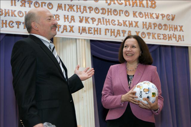 Благодійний фонд «Ренесанс» визначив свої переможців, нагородивши лауреаток першої премії в номінації «бандуристи-інструменталісти» Хмирову Олесю та Свиденко Наталію грошовими сертифікатами. Фонд ім. Гната Хоткевича, в свою чергу. відзначив матеріальними нагородами делегацію з Білорусі, яка подарувала нам виступи чотирьох яскравих цимбалісток, що продемонстрували сильну виконавську школу і здобули три лауреатські титули. Приємною несподіванкою для переможців виявилося вручення сувенірних подарунків від харківської футбольної команди «Металіст». Фото Лазарева
