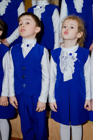 У концерті брали участь 4 хорових дитячих колективи. Помітно було, що саме твори веселого характеру були близькі маленьким виконавцям. Репертуар кожного колективу був різнобарвний: «Пісенька сонячних зайчиків» І. Казеніна; «Музика у лісі» Я.Дубравіна та оригінальна Японська дитяча пісня молодшого хору педагогічної практики ХНУМ (керівник – Володка А.О.) Спів цього хору нагадував дзвіночки, польотність та легкість, тим паче, що деяким виконавцям хору лише виповнилося 5 років! Хор ДШМ №3, художній керівник – ЗарицькаТ.Ю. – відзначився впевненістю та гарним настроєм, особливо було приємно спостерігати, як останній твір дітки виконували з запалом – "В моей вообразилии" В. Птушкіна!