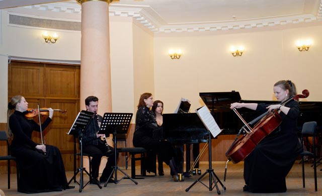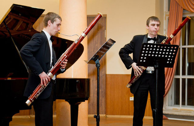 Открыла концерт Соната для двух фаготов соль минор в 4 частях Жозефа де Буамортье в исполнении Андрея Ламзюка и Александра Пастухова. Очарование, с которым было исполнено это произведение, получило живой отклик в сердцах слушателей. Бархатный тембр фагота поражал своей новизной в оттенках, детализацией динамического развития и неподдельной виртуозностью.
