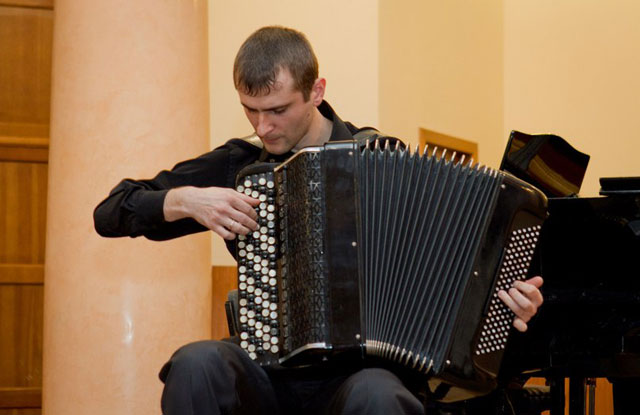 Также поразило эффектное выступление Дмитрия Жарикова (баян), исполнившего 2 и 3 части Сонаты №1 В.Семенова.