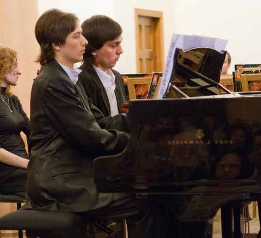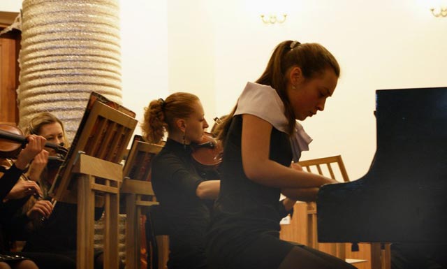 Обрамлением оригинальной музыки стал Клавирный концерт №1 И.С. Баха в исполнении 14-летней Ольги Доценко (класс С. Захаровой), открывавшей концерт и лирический шедевр музыки ХХ века – ІІ часть гитарного концерта Х.Родриго «Аранхуэс», прозвучавший в завершении.