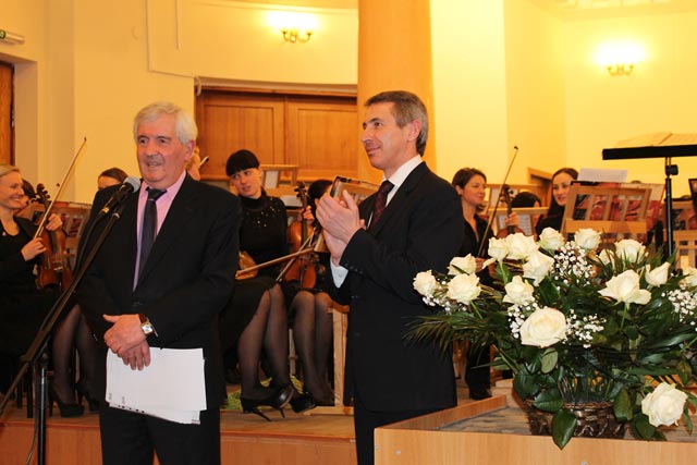 Публику ожидало много сюрпризов, перед одним из них Олег Михайлюта явно волновался, объяснив свои эмоции тем, что тяжело играть, когда в зале сидит твой учитель и наставник. Ведь много-много (!) лет назад Олег бегал по тогда еще институту искусств со своим фаготом на занятия к горячо любимому педагогу – Гаррию Артушевичу Абаджяну. И сегодня, спустя годы, Олег Михайлюта взял фагот в руки и с достоинством исполнил свое соло.