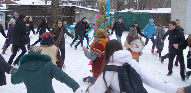 Прекрасный праздник – Масленица. Театрализованный обряд, связанный с проводами зимы и встречей весны! Этот праздник каждый год возрождается на стыке зимы и весны, традиционно проводится во Дворике театрального факультета, благодаря творческому активу студкома (глава, студент IV курса кафедры мастерства актера и режиссуры театра анимации – Валерий Дзех) и сотрудникам мастерской (Юлии Бабаевой, Дарье Кушниренко, Игорю Пировичу) той же кафедры.