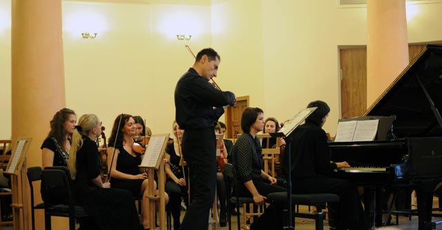 Д.С.: То, что я исполнял в этот раз – чисто русская музыка («Вариации на тему Рококо для виолончели с оркестром» П.И.Чайковского). У меня с ними в этом вопросе очень мало дискуссий, потому что именно в этом репертуаре наши музыканты сильны. Но вот полгода назад (в октябре 2012) и полтора года назад (октябрь 2011), когда мы с камерным студенческим оркестром занимались классикой – виолончельными концертами Й. Гайдна, там у нас были большие споры. Я, судя по всему, убедил ребят. Если верить отзывам об этом проекте, все студенты были довольны, прежде всего, тем, что именно этот проект явился дополнением к их повседневному обучению. Скажем так, надстройкой.