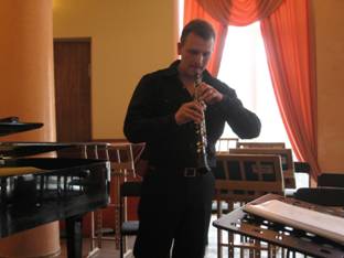 Слушатели смогли услышать также великолепный дуэт семьи Скребцовых – выпускника ХНУИ имени И.П.Котляревского Алексей Скребцова (кларнет) и преподавателя ХССМШ Натальи Скребцовой (фортепиано), исполнивших 3-4 части Концерта для кларнета с оркестром Ж. Франсе.