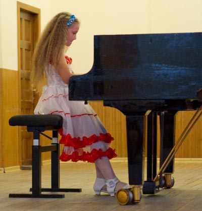 Артистично исполнила «Танец» Н. Сильванского Елена Черных (фортепиано), ученица 2 класса ДМШ города Чугуева. Русская народная песня «Травушка-муравушка» легко и светло прозвучала в исполнении Анастасии Пушкарской (ДМШ №7), обладателя золотой медали на «Дельфийских играх» 2013 года. Курьезный «Кукольный кэк-уок» К. Дебюсси с тонким ощущением ритма сыграла Александра Белицкая (ДМШ №9). Серьезным и музыкальным было исполнение «Гавота» Д. Поппера Антоном Сладкомедовым (виолончель, ДМШ №9). Разнохарактерным предстал рояль в исполнении Евы Говтвы (ДМШ №12) – прозвучали «Хоровод гномов» Э. Грига и «Воспоминание» Л. Шукайло. Высокий исполнительский уровень в «Фантазии-экспромте» Ф. Шопена продемонстрировала выпускница ДМШ №9 Светлана Шелудякова.