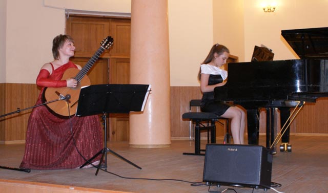Виктория Ткаченко (гитара) с Ольгой Доценко (фортепиано) исполнили часть «Фантазии для благородного рыцаря» Х. Родриго.