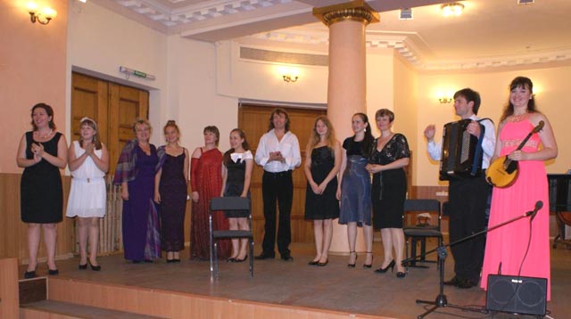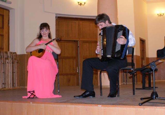 Завершило концерт блестящее выступление семейного дуэта – преподавателя кафедры народных инструментов Украины Натальи Костенко (домра) и Сергея Неверова (баян), исполнивших виртуозные миниатюры Б. Михеева, В. Ивко и В. Качалина в аранжировках С.Неверова.