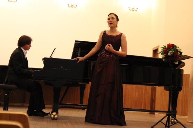 Выразительным и необычайно ярким оказалось выступление Юлии Сидоренко (сопрано). В «Песне Наташи» из оперы «Не только любовь», распетой Родионом Щедриным в духе лирических протяжных песен, Юлия продемонстрировала необыкновенную красоту голоса, умение глубоко вживаться в образ – ее Наташа, переживающая измену любимого, тоскует «без слез», без надрыва, как бы изливая чувство «на миру».И какое резкое перевоплощение – прокофьевская «Болтунья»! Быстрый темп, почти непрерывная «скороговорка», головокружительные вокальные «пируэты» — все звучало легко, непринужденно, с добрым чувством юмора. И совсем по-другому зазвучал голос Юлии Сидоренко в «Ангеле» Вагнера из сборника «Пять стихотворений на слова Матильды Везендонк», а затем – новое переключение уже в сферу фольклора – шуточная песня «Очерет лугом гуде» была исполнена с истинно украинским задором и юмором.