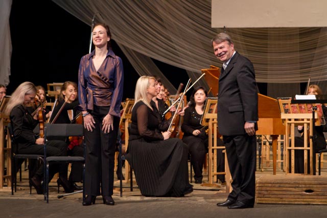 После официально-торжественной части в свои права вступила главная героиня фестиваля – Музыка. Изысканная программа представила уникальное сплетение симфонической музыки и оперных фрагментов. Дирижер Буркхард Ремпе, давний друг фестиваля, представил программу из трех музыкальных эпох: барокко, ранний и поздний романтизм. Сцена из оперы «Неистовый Роланд» А. Вивальди, исполненная вместе с солисткой Ребеккой Мартин, открыла мир барочного изящества, под знаком которого будет проходить весь фестиваль в этом году (Напомним, что тематика ХХ Международного фестиваля «Харьковские ассамблеи»: «Антонио Вивальди в ауре музыкальных юбилеев года»).