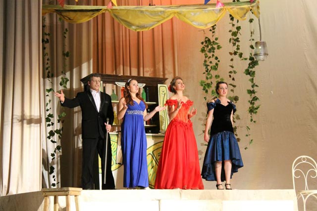 В спектакле оперной студии приняли участие совсем молодые исполнители – студенты III-IV курсов. Но отсутствие сценического опыта не помешало им достойно справиться с творческими задачами. Три героини оперы в исполнении Юлии Филоновой, Рузанны Дарминой и Александры Кузьминой взяли в плен публику с первого своего появления. Качественный вокал, хорошая дикция, непринужденность актерской игры, в которой чувствовалась тонкая ирония – все это по достоинству было оценено публикой. Столь же органично чувствовали себя Никита Маринчак (в роли незадачливого маэстро), Денис Кудряшов и Эдуард Подлесный. К сожалению, оркестр местами заглушал голос Виталия Иванова, создавая певцу определенные неудобства.