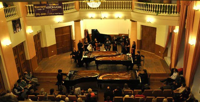 Международный музыкальный фестиваль «Харьковские ассамблеи» подарил слушателям немало встреч с классическим искусством. 12 октября в Большом зале Харьковскогог национального университета искусств имени И.П. Котляревского в рамках фестиваля состоялось уникальное действо - впервые в Украине на одной сцене прозвучали все концерты Баха для двух, трех и четырех клавиров с оркестром. Масштабность этого проекта заслуживает восхищения. На одной сцене появились 4 рояля, один из которых был перенесен сюда специально. Благодаря этому слушатели стали свидетелями премьерного (не только в Харькове, но и в Украине) исполнения двух тройных концертов с оркестром и концерта для четырех клавиров с оркестром Й. С. Баха.