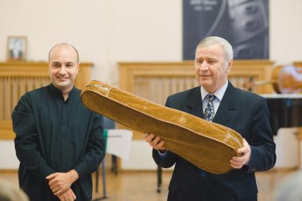 Вот уже третий год в рамках «Харьковских ассамблей» проходят концерты и мастер-классы виолончелиста Дениса Северина (Швейцария). 10 октября состоялся необычный музыкальный вечер: в прошлом – ученик десятилетки, ныне – профессор Женевской консерватории Денис Северин привез родной школе подарки не только музыкальные. Зная, насколько важно для начинающего музыканта иметь качественный инструмент, он перел школе скрипку.