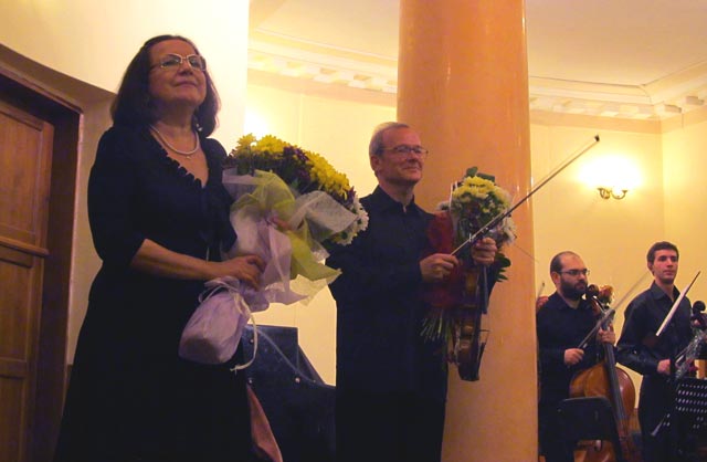 - Жан Пьер Берри мог бы приехать не только со своим концертмейстером, а и со своим квартетом. Но ведь одной из главных задач фестиваля является не концертное выступление само по себе, а коммуникация исполнителей. Конечно, сжатые сроки репетиций несут в себе определенный риск, но он оправдан профессиональным общением музыкантов из разных городов и стран мира. В нашей консерватории есть опытные, надежные концертмейстеры, прекрасно владеющие навыком «читки с листа», умеющие максимально собраться не только в запланированных, но и в экстраординарных ситуациях. (Такой случай произошел 28 сентября на концерте «Камерная музыка». В нем должна была выступать немецкая певица Ребекка Мартин с Буркхадом Ремпе. Но Б. Ремпе неожиданно заболел 26 сентября, и наши пианисты, молодой преподаватель Дмитрий Треничев и ассистент-стажер Максим Лавров, справились со сложными партиями К. Дебюсси, А. Берга, Г. Малера, С. Барбера всего за один день). К таким концертмейстерам относится и Мария Васильевна Бондаренко (доцент кафедры специального фортепиано) играющая в строгой академической манере, которая хорошо оттенила романтический характер исполнения Жана Берри.