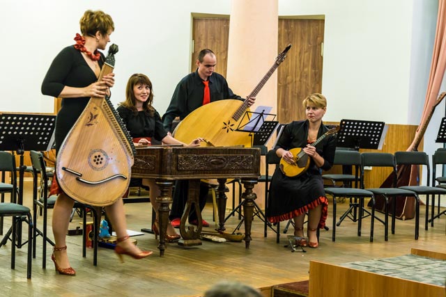 Удачно вписались в концерт выступления гостей из Академии культуры – квартета «ЦимБанДо и К» преподавателей академии культуры и фольклорного ансамбля «Фарбы», Согласно режиссерской задумке украинские народные мелодии в исполнении «Фарб» звучали за сценой – в качестве музыкальной заставки вечера. А далее фольклорный коллектив неоднократно выходил к публике, разбавляя инструментальную музыку пением а-капелла.