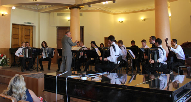 27.09.в 14.00 в большом зале университета звучала музыка Баха, Генделя и Скарлатти в переложении для народных инструментов. В тембрах баяна, аккордеона, бандуры, домры мы услышали прелюдии и фуги ХТК, скрипичные и клавирные сонаты, чаконы, концерты. «Пассакалия» Генделя в исполнении оркестра народных инструментов (дирижёр профессор Борис Михеев) и органная прелюдия f-moll Баха оркестра баянистов-аккордеонистов (дирижёр профессор Александр Назаренко) обрамляли программу. Проникновенная мелодика «Чаконы» d-moll Баха в трактовке Дмитрия Жарикова и «деликаная» игра скрипичной сонаты c-moll дуэтом Натальи Костенко (домра) и Сергея Неверова (баян) всколыхнули зрительный зал и вызвали аплодисменты. Интересно было услышать органную прелюдию и фугу a-moll Баха в переложении для бандуры (солистка –Анна Яновская). Овациями одарила публика Юрия Дяченко, исполнившего «Чакону» Пахельбеля.