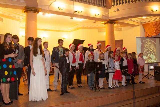 Завершился концерт рождественской песней в исполнении вокального ансамбля «Харьковские соловушки» (ДМШ№3) и, конечно же, сладкими подарками от Деда Мороза. 2015 год завершился, но в 2016 году зрителей ждёт много интересного. В частности, в феврале планируется концерт «Детской филармонии» совместно с Ландау-центром - «Музыка и физика». Приходите!