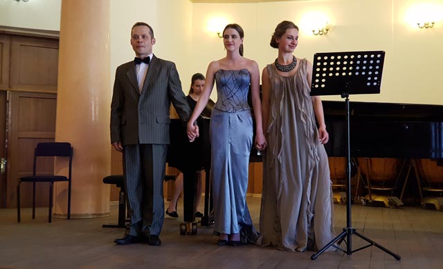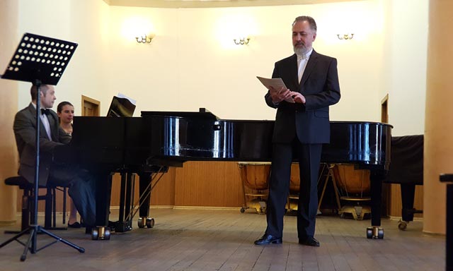Вокальну частину програми складали романси «О если б мог выразить в звуке» Л. Малашкіна у виконанні Є. Лєвашова (баритон), «Бузок» С. Рахманінова в інтерпретації Д. Пономарьової (сопрано), що додали особливого ліричного тону атмосфері концерту. Вокальні твори Імре Кальмана прозвучали у виконанні баритона Євгена Лєвашова (концертмейстер Марина Семко) і Дарії Пономарьової (концертмейстер Максим Шадько). Євген виступив в ролі Містера Ікса (оперета «Принцеса цирку»), а Дар’я в ролі Сільви (оперета «Сільва»). Вдало доповнивши один одного, вони завершили концертний вечір. У ролі ведучого концерту виступив студент-музикознавець Олександр Лисичка.