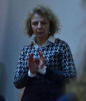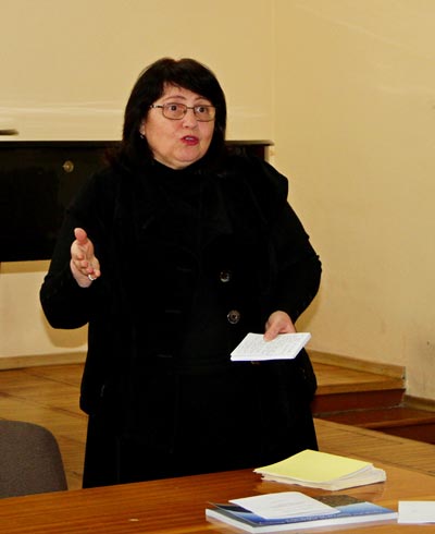 Ірина Кобзар і розповіла присутнім про два покоління наших випускників - про курс О. Біляцького (1989 р. випуску) і випуски 2008-2010 рр. - як про нову генерацію українського театру, котра не тільки успішно вписалась у театральний контекст Харкова, а й здібна вирішувати як творчі, так і економічні проблеми свого професійного життя.