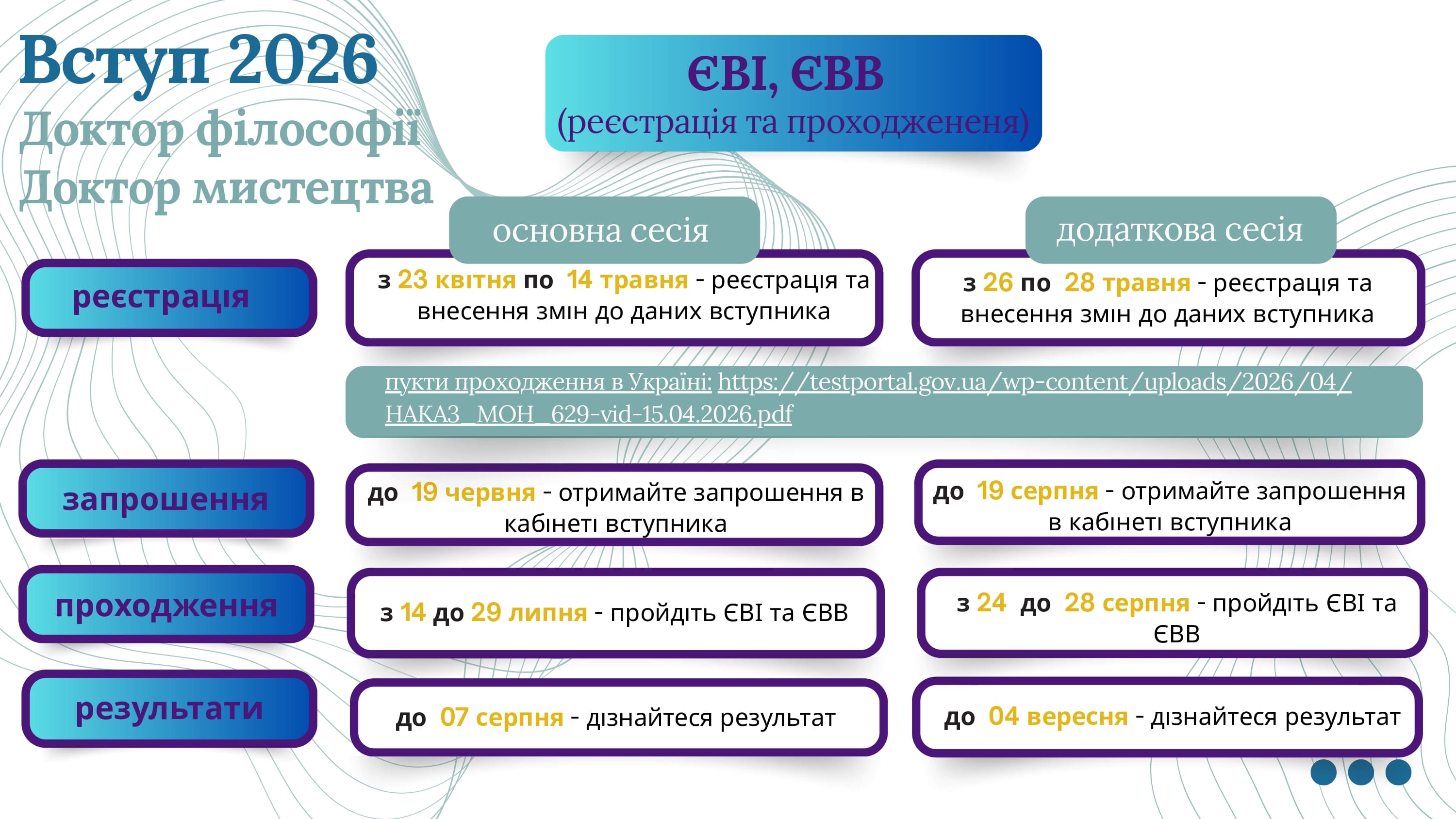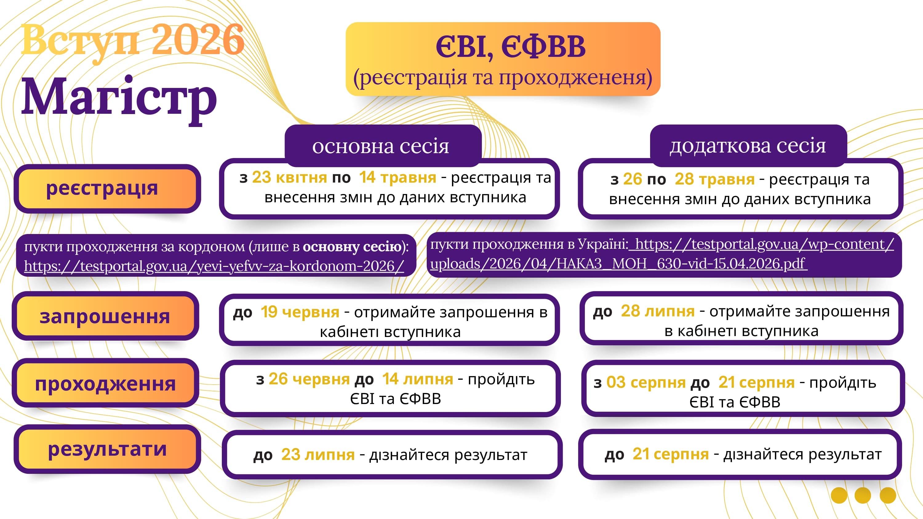 Пункти проходження ЄВІ, ЄФВВ (магістри) в Україні (основна та додаткова сесії)