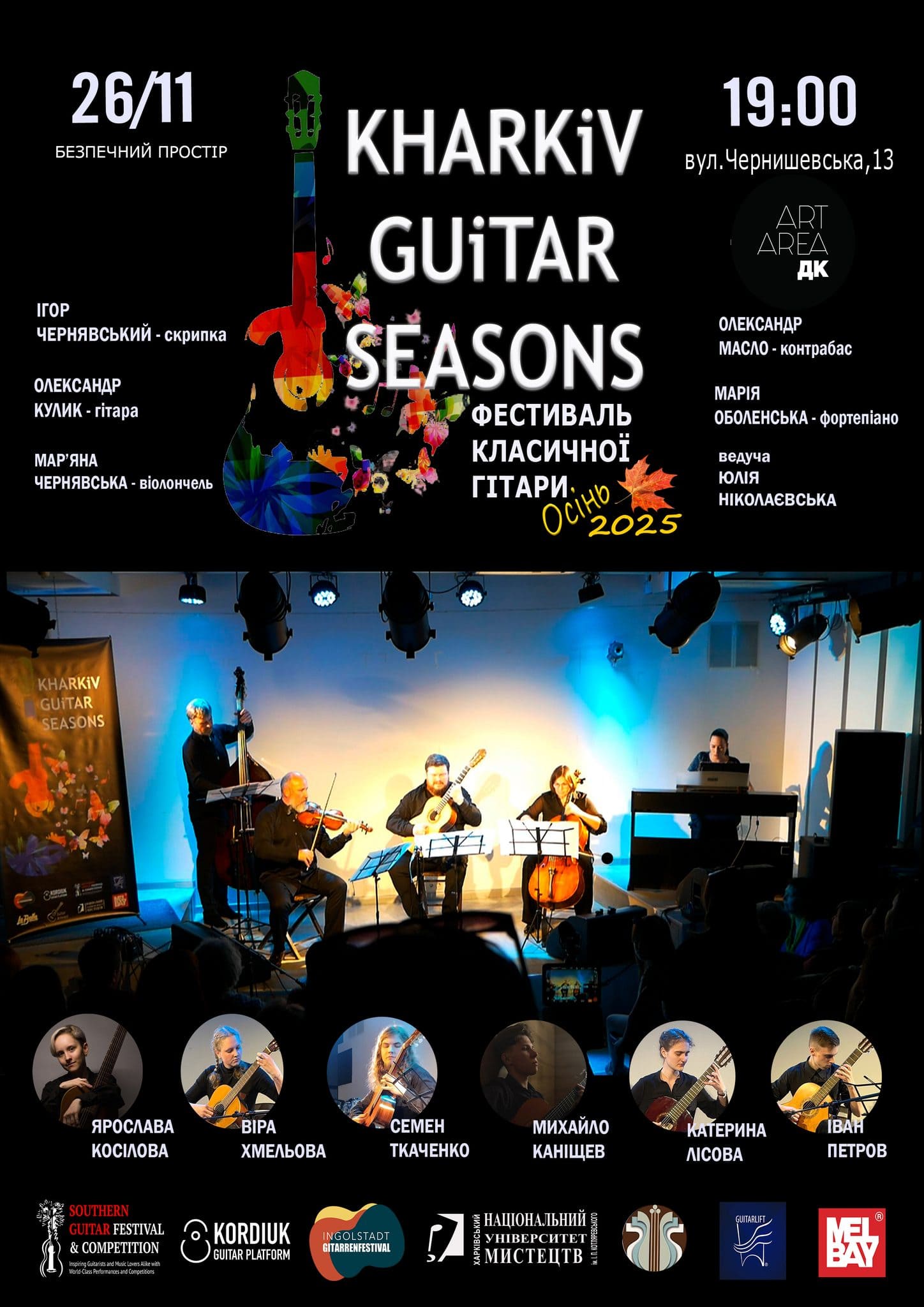 Цей фестиваль став вже шостим від 2024 р. У заході взяли участь викладачі та студенти ХНУМ імені І.П.Котляревського, Харківського музичного фахового коледжу імені Б.М.Лятошинського, солісти – лауреати і володарі Гран-прі міжнародних музичних конкурсів: заслужений діяч мистецтв України Ігор ЧЕРНЯВСЬКИЙ (скрипка), Олександр КУЛИК (гітара), Мар’яна ЧЕРНЯВСЬКА (віолончель), Марія ОБОЛЕНСЬКА (фортепіано), Олександр МАСЛО (контрабас), гітарний ансамбль у складі Ярослава КОСІЛОВА, Віра ХМЕЛЬОВА, Михайло КАНІЩЕВ, Семен ТКАЧЕНКО, Катерина ЛІСОВА, ведуча – професорка Юлія НІКОЛАЄВСЬКА.