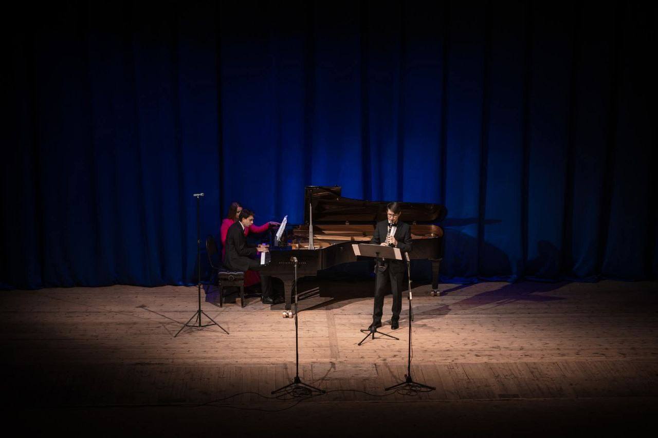 У концерті взяли участь викладачі ХНУМ – доктор філософії, старший викладач університетської кафедри теорії музики Руслан КАШИРЦЕВ (кларнет), доцент кафедри спеціального фортепіано, кандидат мистецтвознавства, лауреат міжнародних конкурсів Олег КОПЕЛЮК (фортепіано), у виконанні яких під час першого відділення концерту прозвучав «Диско-хоровод» для кларнета та фортепіано І. Карабиця.