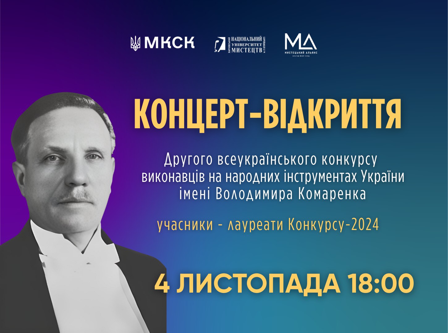 4-6 ЛИСТОПАДА 2025 р. У ХНУМ ІМЕНІ І.П.КОТЛЯРЕВСЬКОГО ВІДБУДЕТЬСЯ ІІ ВСЕУКРАЇНСЬКИЙ КОНКУРС ВИКОНАВЦІВ НА НАРОДНИХ ІНСТРУМЕНТАХ ІМЕНІ ВОЛОДИМИРА КОМАРЕНКА. ОРГАНІЗАТОР - УНІВЕРСИТЕТСЬКА КАФЕДРА НАРОДНИХ ІНСТРУМЕНТІВ УКРАЇНИ. ЗА ПІДТРИМКИ МІНІСТЕРСТВА КУЛЬТУРИ ТА СТРАТЕГІЧНИХ КОМУНІКАЦІЙ УКРАЇНИ НАЦІОНАЛЬНОЇ ВСЕУКРАЇНСЬКОЇ МУЗИЧНОЇ СПІЛКИ ОБЛАСНОГО НАВЧАЛЬНО-МЕТОДИЧНОГО ЦЕНТРУ ПІДВИЩЕННЯ КВАЛІФІКАЦІЇ ПРАЦІВНИКІВ КУЛЬТОСВІТНІХ ЗАКЛАДІВ.