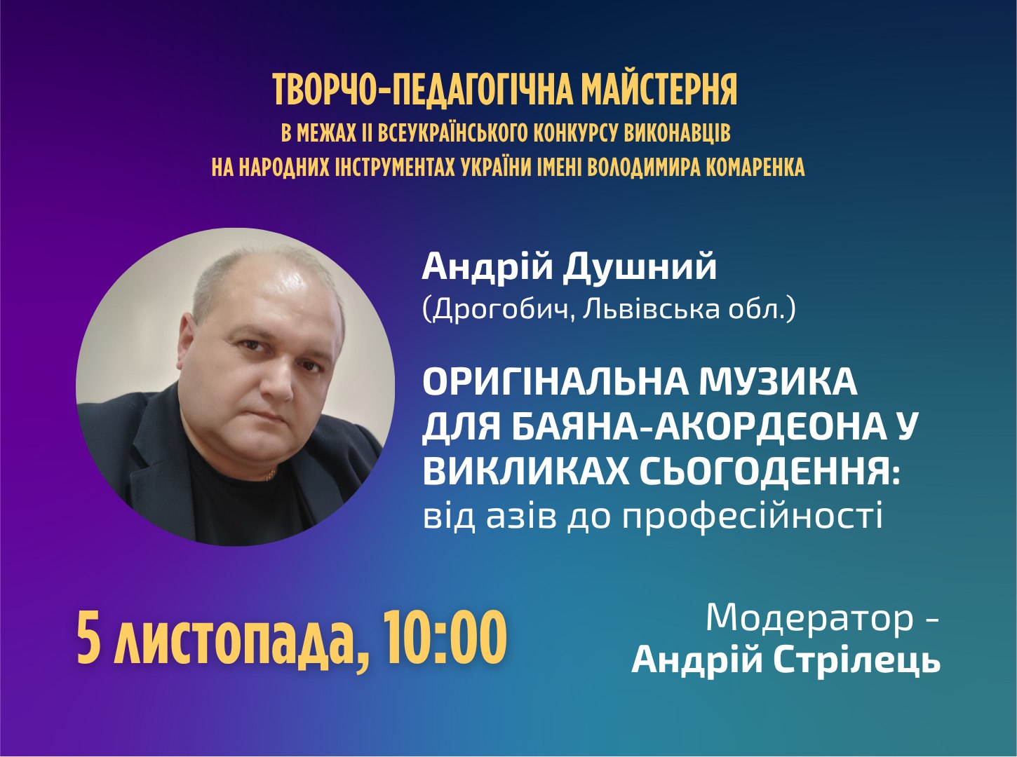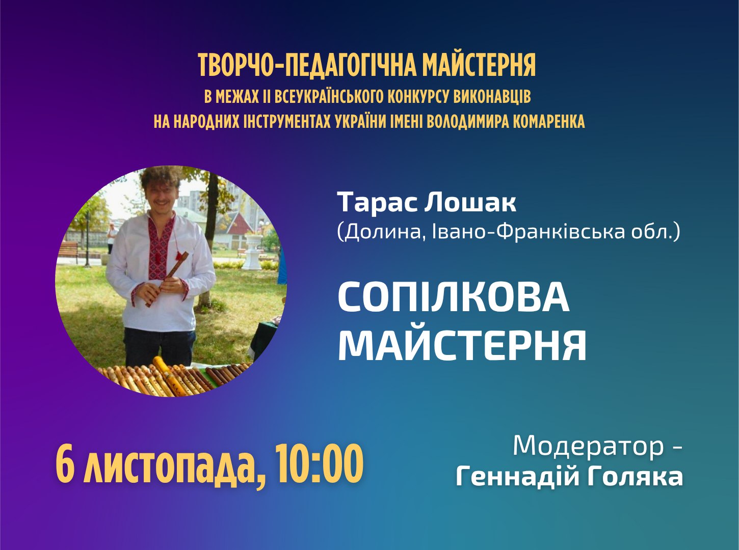 ТВОРЧО-ПЕДАГОГІЧНІ МАЙСТЕРНІ У МЕЖАХ ІІ ВСЕУКРАЇНСЬКОГО КОНКУРСУ ВИКОНАВЦІВ НА НАРОДНИХ ІНСТРУМЕНТАХ УКРАЇНИ ІМЕНІ ВОЛОДИМИРА КОМАРЕНКА